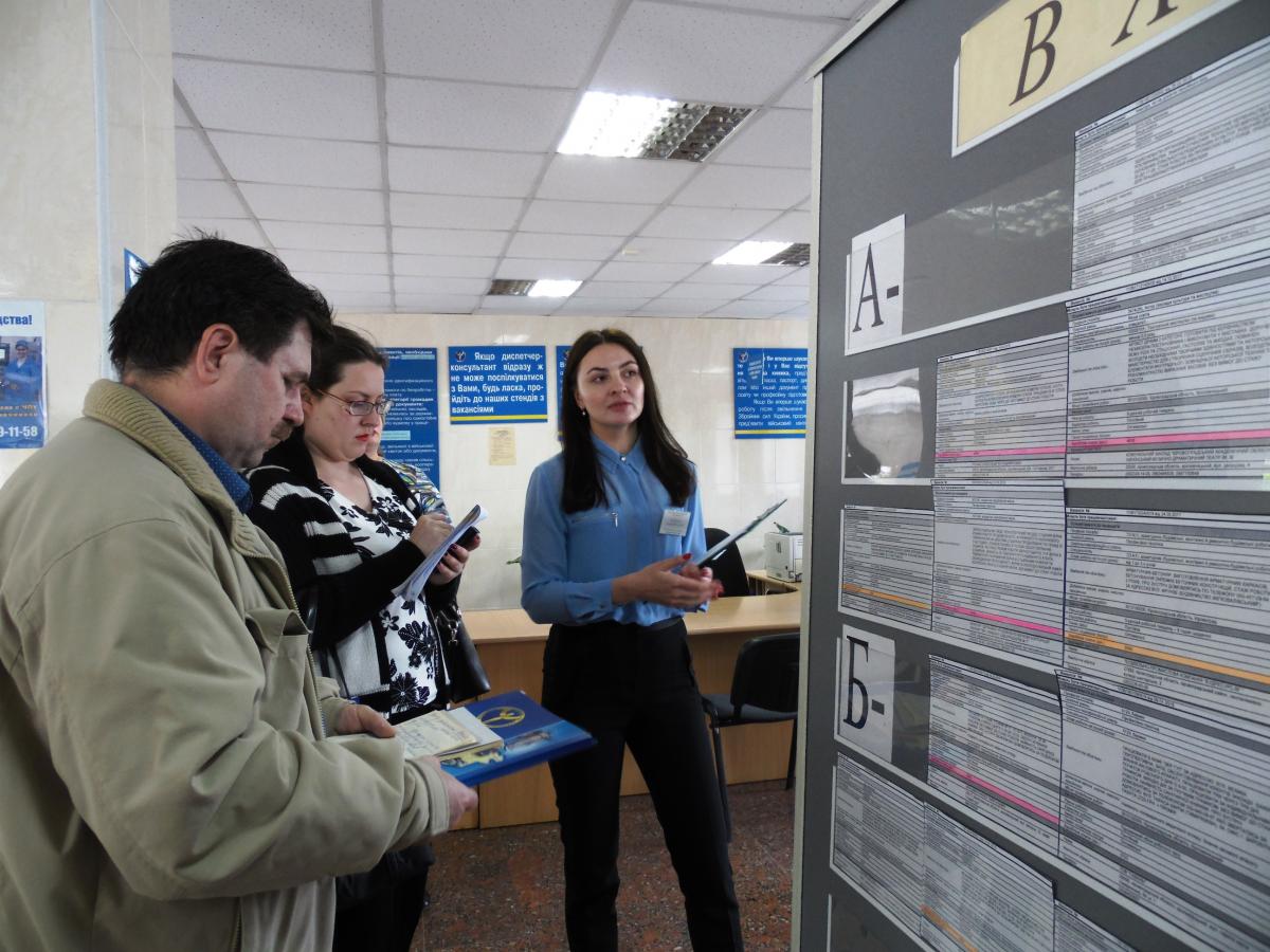 Лідія Чумаченко, начальник відділу організації працевлаштування населення, акцентувала увагу присутніх на тому, що міськрайонний центр зайнятості спрямовує свою роботу в напрямку сприяння зайнятості громадян, у т.ч. тих, які переміщуються з тимчасово окупованої території та демобілізованих військовослужбовців та учасників АТО, шляхом надання їм соціальних послуг з урахуванням їхніх можливостей, інтересів та ситуації, що склалася на регіональному ринку праці. Насамперед, це підбір підходящої роботи, організація професійного навчання для підвищення конкурентоспроможності на ринку праці, сприяння в започаткуванні власного