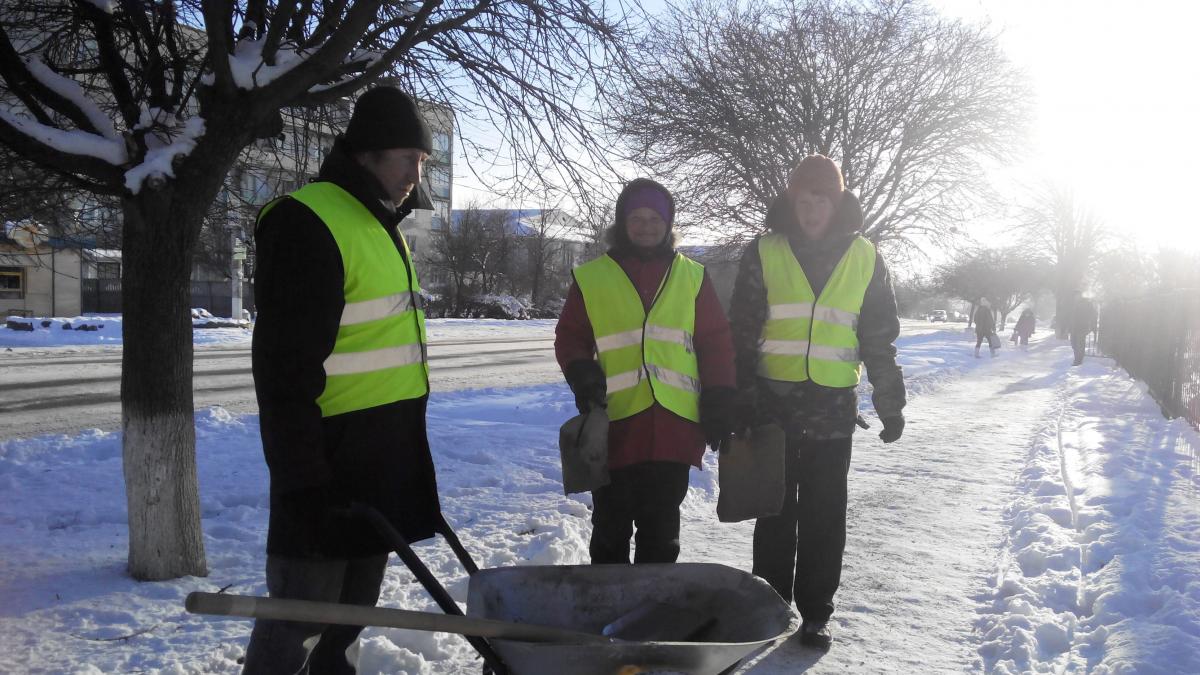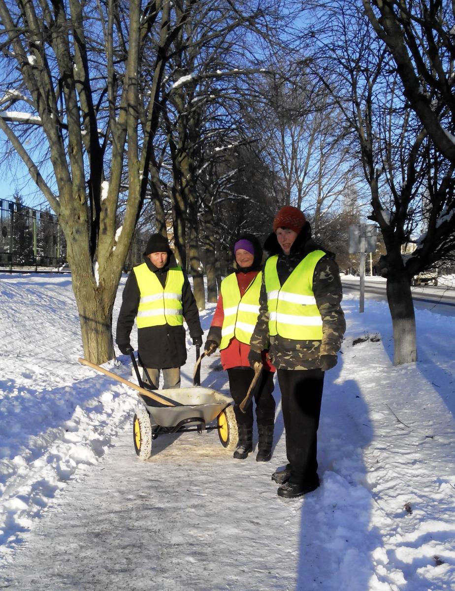 Безробітні були залучені до робіт з розчищення пішохідних доріжок, зупинок громадського транспорту та прилеглої до них територій, забезпечення доступу до закладів соціальної сфери і улюблених місць відпочинку мешканців та гостей міста. Ці роботи є дуже важливими для благоустрою районного центру, саме тому вони будуть продовжуватись і надалі.