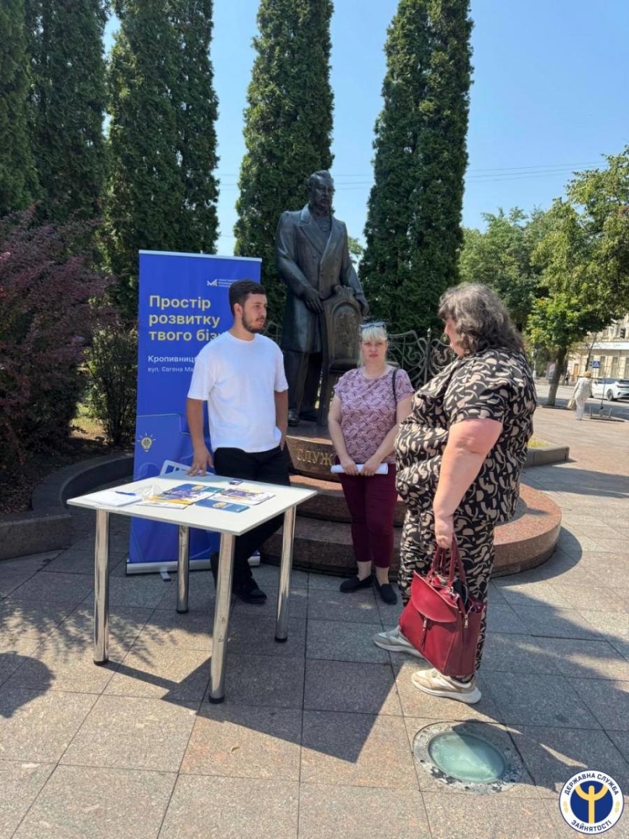 30 липня у рамках заходів до Всесвітнього дня протидії торгівлі людьми, у центрі міста, біля міської ради, фахівці Кропивницької філії Кіровоградського обласного центру зайнятості пропонували актуальні вакансії міста та району.