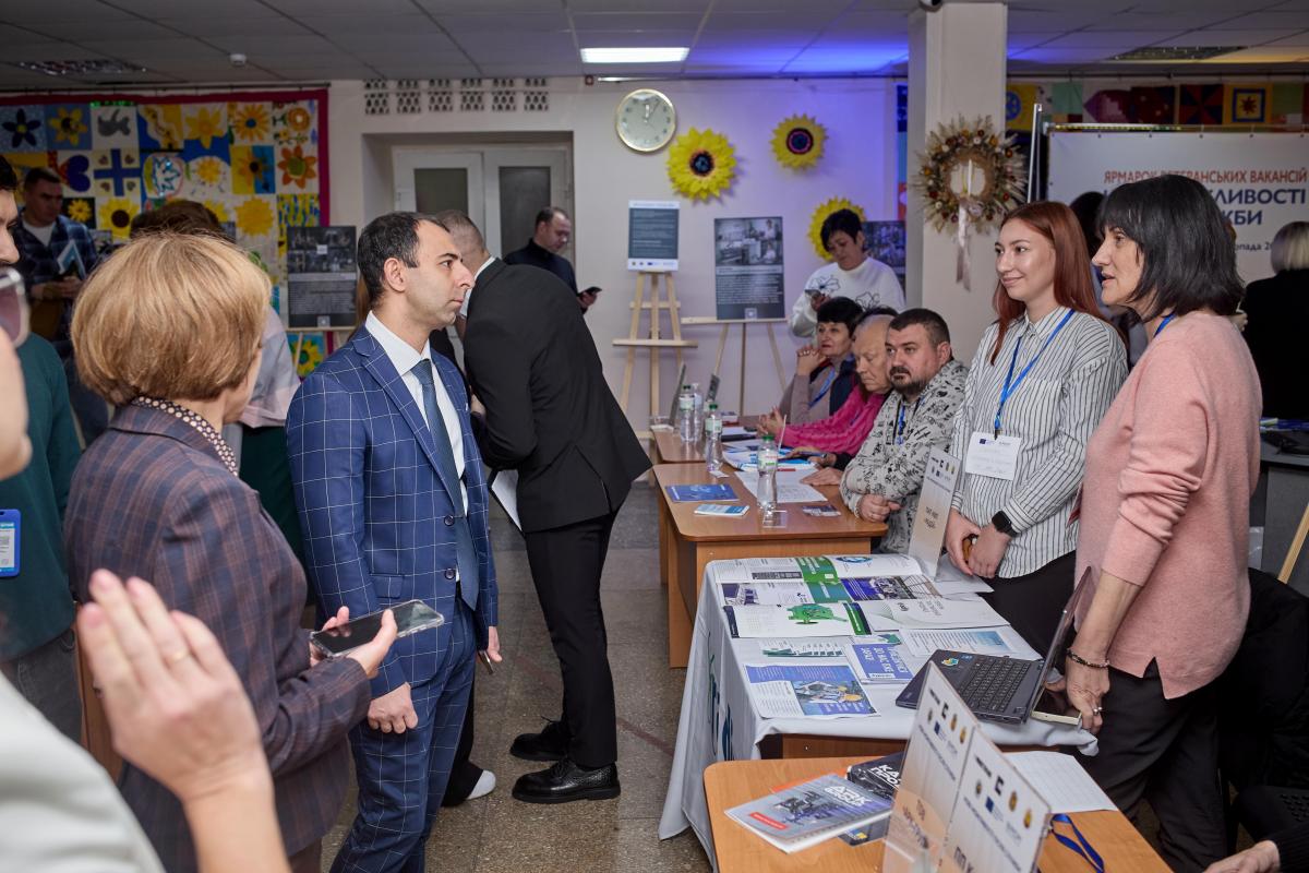 Учасники ярмарку мали змогу поспілкуватися з понад 50 роботодавцями регіону, дізнатися про актуальні вакансії у сфері промисловості, логістики, охорони, торгівлі, ІТ, державного управління та