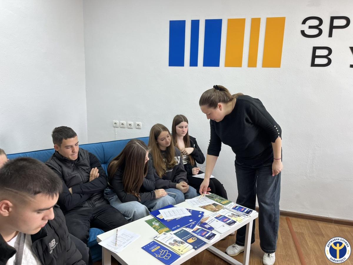 Захід розпочався зі знайомства з послугами служби зайнятості, які надаються учнівській та студентській молоді, зайнятому та незайнятому населенню, роботодавцям.