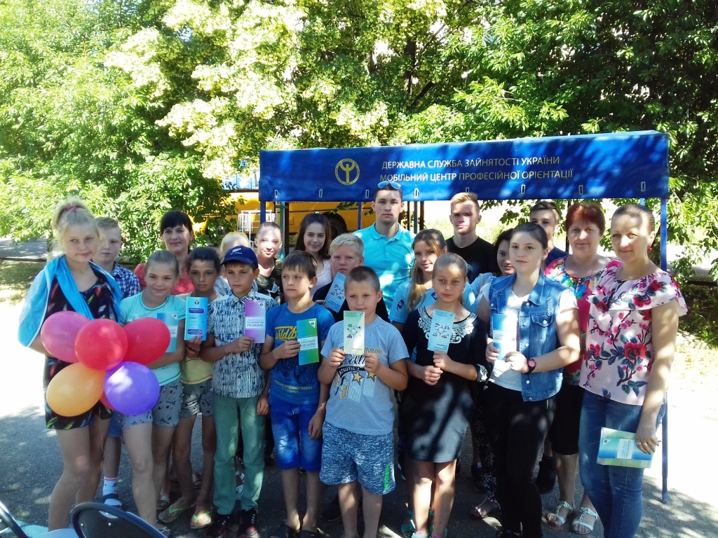 Вже стало традицією щороку проводити в пришкільних літніх таборах виїзні профорієнтаційні заходи з використанням мобільного центру профорієнтації. От і цьогоріч, фахівцями відділу активної підтримки безробітних Кіровоградського міськрайонного центру зайнятості, у рамках акції «Профорієнтаційне літо», такий захід було організовано для учнів КЗ «Миколаївського НВО».