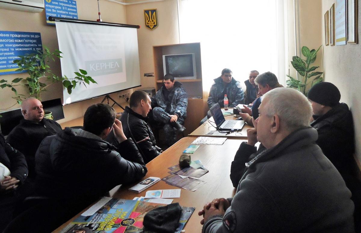 Старший охоронник підприємства Андрій Камінський презентував посаду «охоронник», ознайомив шукачів роботи з умовами праці, вимогами до працівників, графіком роботи.