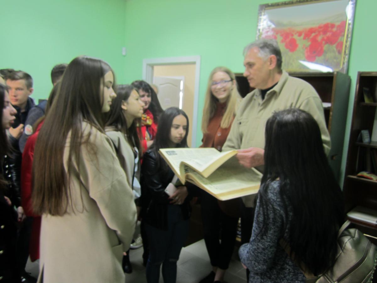 Школярі мали змогу поспілкуватись із головним редактором газети Володимиром Кіфенко, який спочатку розповів про історію створення газети, а далі зупинився на роботі видання: означив основні практичні аспекти газетного виробництва. У старшокласників виникло безліч запитань, проте головний редактор методично та професійно відповів на усі запитання, що були поставлені аудиторією.
