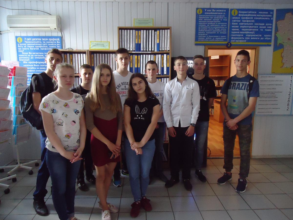 Днями одна із підгруп 10-В класу завітала до Голованівського районного центру зайнятості. Фахівцем центру зайнятості Нелею Лісніченко для школярів була проведена екскурсія підчас якої учні були ознайомлені із напрямками діяльності центру зайнятості, послугами, які надаються для зайнятого та незайнятого населення, роботодавців, учнівської та студентської молоді, соціальним захистом для безробітних, профорієнтаційною роботою, впровадженням новітніх інформаційних та електронних технологій.