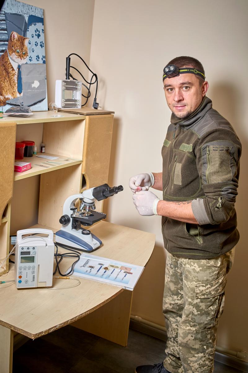 Повномасштабне вторгнення агресора та початок активних бойових дій змусили чоловіка залишити улюблену справу й стати на захист кордонів рідної держави. Перший бойовий досвід у період воєнного стану він здобув на Херсонському напрямку, де служив санітарним інструктором – надавав першу медичну допомогу пораненим побратимам, рятував життя, підтримував у найважчі моменти. Після тривалого періоду служби, маючи вагомі підстави для звільнення, він повернувся до цивільного життя. Цей шлях був непростим, але сповненим гідності, рішучості та віри в новий етап – мирний, але не менш важливий.