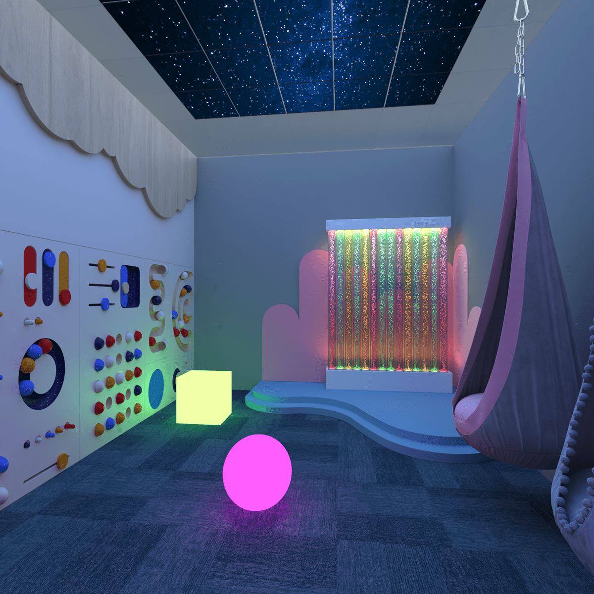 «Нічна сенсорна кімната – це особливий простір, створений для дітей із порушеннями сенсорної інтеграції, таких як СДУГ (синдром дефіциту уваги та гіперактивності), розлади аутичного спектра, алалія, затримка психомовного розвитку, дитячий церебральний параліч, синдром Дауна, синдром Аспергера, дислексія та дисграфія.