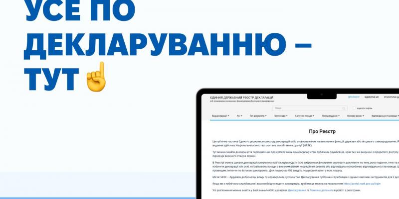 З 1 січня по 31 березня включно триває кампанія декларування публічних службовців за 2025 рік. Декларацію можна подати, зайшовши до персонального електронного кабінету  Єдиного державного реєстру декларацій осіб, уповноважених на виконання функцій держави або місцевого самоврядування (Реєстру декларації).